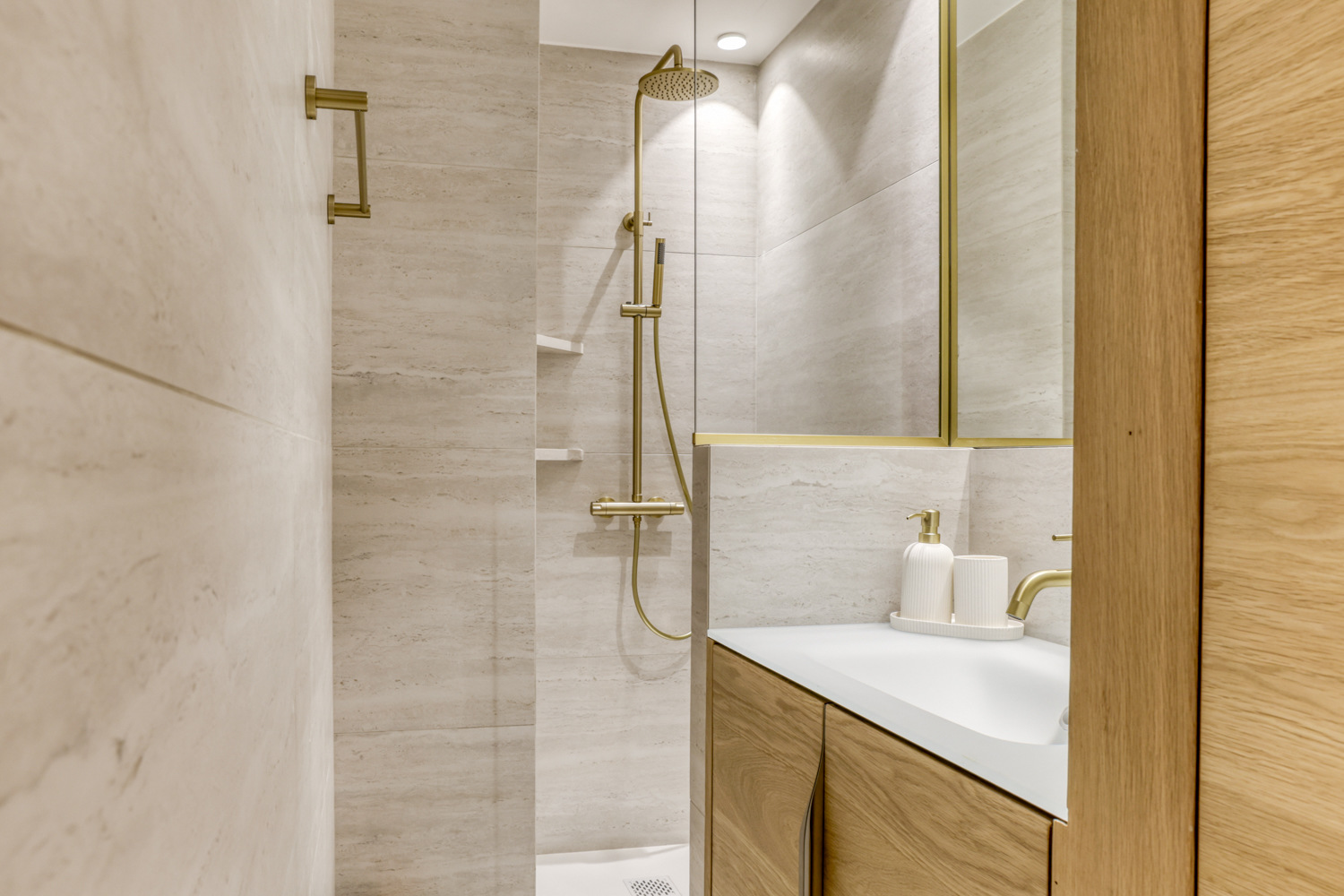 - Une chambre à lit de 160 cm avec placard/penderie, et sa salle de douches,